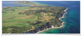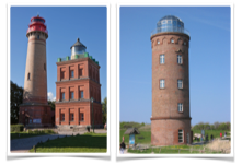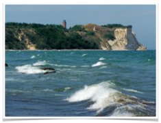 Kap Arkona, das Nordkap der Insel, ist ein imposantes Steilkliff, bis 50 Meter aus dem Meer aufsteigend aus Kreide und Geschiebemergel. Hoch über dem Kap ragen die zwei Leuchttürme in den Himmel. Der viereckige 19 Meter hohe Schinkelturm wurde 1827 errichtet. 1901 erbaute man den heute noch betriebenen runden Leuchtturm mit 36 Meter Höhe. Etwas abseits befindet sich der Peilturm, dahinter die Jaromarsburg. Mehr als die Hälfte sind schon vom Meer verschlungen. Ein Schutzwall der slawischen Ragen und oberstes Heiligtum Ihres mehrköpfigen Gottes Svantevit. - Kap Argon, ein Muss für jeden Rügenbesucher.