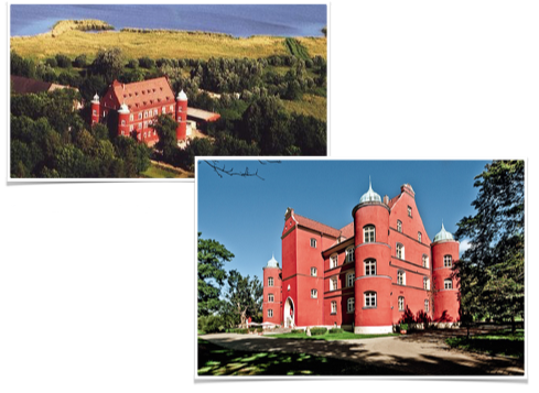 ab 1650 zum heutigen Renaissanceschloss umgestaltet und mit dem für Rügen untypischen, schwedischen Falunrot gestrichen. In der Beletage wurden um 1652 die im baltischen Raum einmaligen, vollplastischen Stuckdecken angebracht.