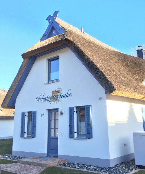 Das im Jahr 2015 neu gebaute Ferienhaus "Schatztruhe" liegt in Glowe, einem ehemaligen Fischerdorf, im Nord-Osten von Rügen, Deutschlands sonnenreichster Insel.